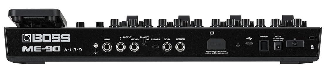 - The BOSS ME series has been a favorite of performing guitarists for over three decades, combining multi-effects power with intuitive hands-on control for crafting tones in seconds. The ME-90 is the most advanced ME model to date, offering exceptional audio quality, flagship-grade AIRD amp models, IR loading, an effects loop, and more. Compact, battery-powered, and filled with premium BOSS tones, this versatile all-in-one processor makes it easy to build customized sound setups for every playing situation. With its knob-driven interface and diverse effects selection, the ME-90 lets you build configurations and tweak tones with the ease of a stompbox-filled pedalboard-without the hassle of fastening tape, power distribution, and multiple connection cables. Just dial up an amp model or effect type within a category and turn the knobs to get the sound you want.Nominal Input Level: INPUT: -10 dBu RETURN: -10 dBuMaximum Input Level INPUT: +7 dBu RETURN: +7 dBuInput ImpedanceINPUT: 1 M ohm RETURN: 1 M ohmNominal Output LevelOUTPUT (L/MONO, R): -10 dBu PHONES: -10 dBu SEND: -10 dBuOutput Impedance OUTPUT (L/MONO, R): 1 k ohm PHONES: 44 ohms SEND: 1 k ohmAdding value to your purchase, Austin Bazaar bundles your instrument with quality accessories, saving you time and money. We've included a power adapter so you can begin using your instrument immediately. The added 10ft instrument cable and 6 inches Patch Cable, feature spiral shielding and durable nickel-plated connectors, a reliable choice for your cable needs in the studio and on stage. A variety pack of picks is included so don't have to purchase them seperately. Everything you need to play right out of the box!