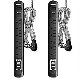 - 6 Outlets OviiTech Power Strip Surge Protector with 3 Smart USB Charging Ports(3.4A), 5 Foot Heavy Duty Extension Cord, Home/Office, Black, ETL Listed Convenience Design