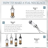 Surprising package: you will receive the keepsake holder set which includes 4 pieces of glass vial pendants and 4 pieces of chains; A total of these jewelry supplies will meet your needs for various handicrafts making, and you can also share this vial remains necklace as a Christmas gift with your friends Quality material selection: the openable pendants are made of acrylic and stainless steel, high polished gloss surfaces, strong against breakage or bending, serving you for a long time; In addition, the necklace chains are made of stainless steel, light in weight, not easy to fade, deform or rust, reliable enough for you, and you can use them with confidence Ingenious design: the glass capsule necklace kit can be given as a gift to your friends or family, and they can add something meaningful to the pendant, as a way to create a special recollection; And it looks just like other regular pendants, no prominence, can be easily worn with your outfit for everyday wear Notable size details: the necklace vial is about 1.61 x 0.39 inches, and the snake necklace chain is about 19.69 x 0.08 inches, moreover, there is an opening hole, approx. 0.20 inches in diameter, is rotated at the top for small items, simple and convenient DIY gadgets: the urn pendant set should be assembled, and you can apply these pendants to store a small amount of ashes, a wisp of hair, fine sand, rice carving, perfume, essential oil and other items, also suitable to store small amounts of dried flowers, sand from home or travel places, feathers, crystals, or even photos; Display your imagination boldly, and keep the memories of your loved ones close to your heart