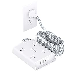 【Wide Space Outlets Power Strip】-This desktop power strip features 4 AC outlets without blocking(1875W/125V/15A). The AC outlet with 2.4 inches space in between, larger than the standard 1.5-inch socket. Making it enough to fit big adapters and suitable for all kinds of equipment, home office college dorm room essentials 【10 Ft Flat Pulg Extension Cord】- Upgraded braided extension cord 10ft is made of 100% copper wire, and the power cord is long enough to reach the corner. With only 0.35 inch ultra thin plug and 45-degree right angle design, which is much slimmer than traditional plugs, which can close to the wall easily, and hide in the back of furniture, bed or refrigerator 【Power Strip with USB C Ports】- Added extra 2 USB C ports for your devices, the USB C power strip can charge up to 5V/3A. USB-A ports can charge up to 5V/2.4A Max. The combination of 2 USB-C and 2 USB-A can be compatible with more usb devices, must-have accessories for college dorm room, home, office 【Overload Surge Protection】- The surge protector with overload protection protects your electrical appliances from lighting, surges or spikes. The minimum energy-absorbing capacity of 900 Joules. Lighted on/off switch with integrated circuit breaker for overload protection of all outlets 【Wall Mount Power Strip 】- No need to measure and guess where you had to attach screws, Addtam unique screw fixation design on both ends allow this white mountable power strip securely installed on the wall or under the desk (4 screws included)