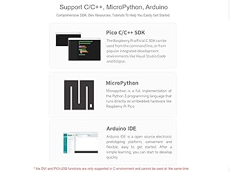 High-performance and cost-effective microcontroller board designed by Waveshare RP2040-PiZero Development Board Based On Raspberry Pi RP2040,Compatible With Raspberry Pi 40PIN GPIO Header Integrates Multiple Interfaces,Onboard DVI Interface, PIO-USB Port And TF Card Slot For More Possibilities Support C/C++, MicroPython, Arduino,Comprehensive SDK, Dev Resources, Tutorials To Help You Easily Get Started Dual-Core ARM Processor,Dual-Core ARM Cortex M0+ Processor, Flexible Clock Running Up To 133 MHz