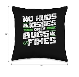 Developer Programming Job Developing It Software No Hugs & Kisses Only Bugs & Fixes Coder Coding Throw Pillow, 16x16, Multicolor