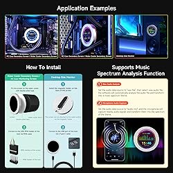 [Real Time Display]Benefit from the high-performance processors, the watercooler screen supports real time display monitoring data, 480×480 Resolution, 2.8inch round monitor with Black CNC Metal Case. 💻[Various Data Monitoring]Real time display multiple monitoring data. Such as CPU/ Graphics card/ Memory/ Hard disk drive/ Network/ others(Board model/ city/ weather/ date time/ volume) [Easy To Use and Install]Only one USB cable is required for power supply and data transmission, easy to connect without complicated operation.Easy to install, please check the image for installation details. [One-Click Operation]Use with the software we provided, and click 'run' after the screen connecting to the host. Supports automatic startup on boot, one-click to switch themes, brightness adjustment, etc. [CNC Integrated Process]Adopts an aluminum alloy case, rigid and durable, improving the overall quality.