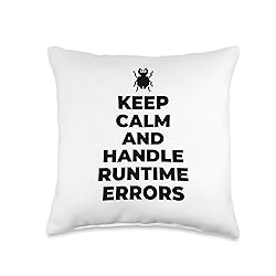 100% Polyester Keep Calm and handle runtime errors 100% spun-polyester fabric Double-sided print Filled with 100% polyester and sewn closed Individually cut and sewn by hand Spot clean/dry clean only