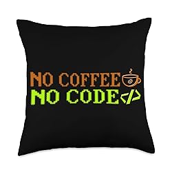 software programmers and coding designs Computer Programmer Developer no Coffee no Code Funny Throw Pillow, 18x18, Multicolor