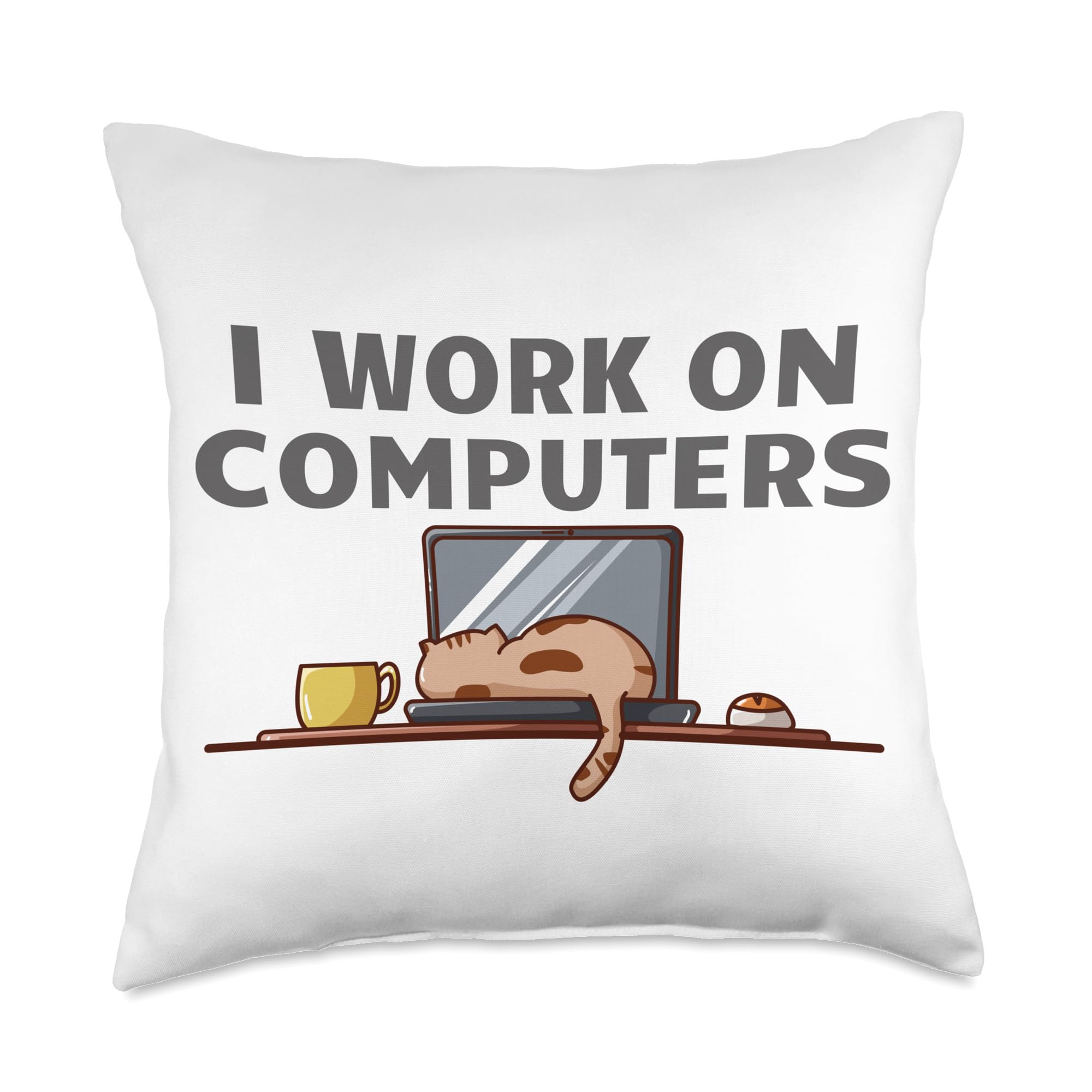 Funny Tech Support Cat Computer Don't Worry I'm from Tech Support Funny Cat Throw Pillow, 16x16, Multicolor