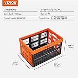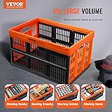 VEVOR Plastic Collapsible Storage Basket, 45L 3 Packs, Folding Stackable Storage Containers/Bins with Handles, Large Heavy Duty Containers for Clothes, Toys, Books, Snack, Shoes and Grocery Organizing