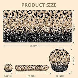 iLeadon Mouse Pad Set, Desk Mat + Mouse Pad with Wrist Rest + Keyboard Wrist Rest + Coaster, 4in1 Leopard Mouse and Keyboard Pad Set for Home Office, Black Gold Leopard