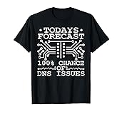 - Todays Forecast 100% Chance of DNS issues is a design for a computer nerd or IT nerd or maybe a computer science student. Perfect item for a network analyst or a network expert who likes network engineering. Great network administrator or sysadmin item. Perfect if you work with ethernet cables and switches. This Network Admin, Forecast DNS Issues, Sysadmin & IT Programmer is designed by System Admin Idea & System Engineering Accessories.