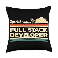 Full Stack Developer Gifts Vintage Full Stack Developer Throw Pillow, 18x18, Multicolor