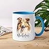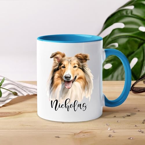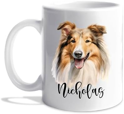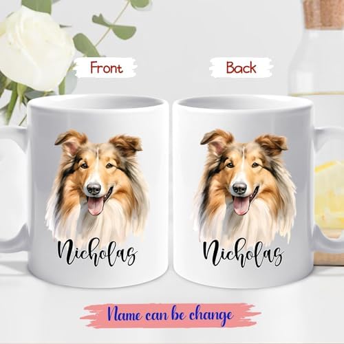 Personalized Rough Collie Ceramic Coffee Mug 11 Oz 15 Oz, Customized Name Long-Haired Collie Accent Mug, Unique Collie Dogs White Coffee Cup, Funny Rough Collie Travel Cup Gift For Men Women Dog Lover