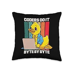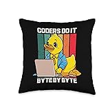 Coders Do It Byte By Byte Rubber Duck Coding Gift Coders Byte | Rubber Duck | Programming Coding Throw Pillow, 16x16, Multicolor