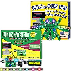 - Combine hands-on play with in-depth circuit building with Buzz the Code Bug and Ultimate Kit. Buzz gets kids started fast with his built-in sensor, motor, buttons, turn knob, speaker, and LED pixel wings. Once kids are ready to build their own custom circuits, they can move to Ultimate Kit, which contains pluggable electonics and the Maker Board microcontroller. Over 200 online projects span core coding concepts and teach kids the skills that the pros use, but in a fun and hands-on way.