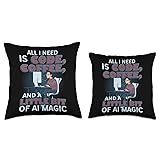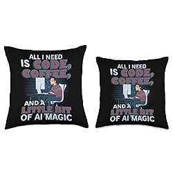 AI Lover Designs for Programmers & Coders Code Coffee and A Little Bit of Al Magic Programmer Throw Pillow, 18x18, Multicolor