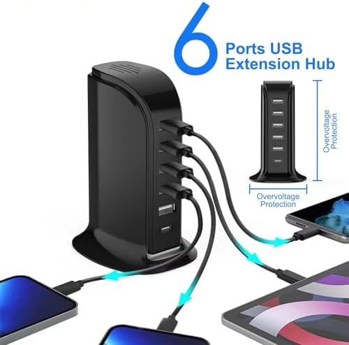 - ⚡【What You Get】You'll receive a Multi-port USB charger station and a 100~240V AC input 3.3 ft / 1.0 Meter ultra-long detachable power cord.
