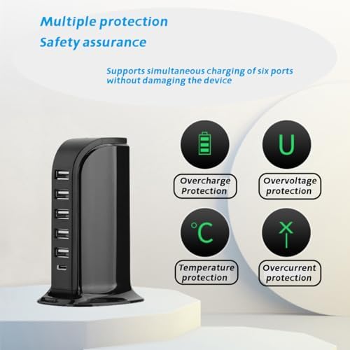 USB Charging Station for Multiple Devices, Multiport Charger Tower, USB-C supports PD quick charge compatible with Iphone, Smartphones, Tablets and Other Devices