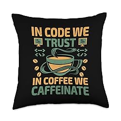 Programming Coffee Caffeine Development Coding Programmer Coder Developer Nerd Coffee Lover Throw Pillow, 18x18, Multicolor