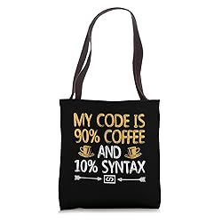 Dive into the world of coding with a cup of your favorite brew. Celebrate the coder's love affair with coffee, a match made in coding heaven. Whether you're a coding enthusiast, developer, or simply a coffee lover, our designs embody the union of code and caffeine. It's a sip of inspiration for your coding journey. 16” x 16” bag with two 14” long and 1” wide black cotton webbing strap handles. Made of a lightweight, spun polyester canvas-like fabric. All seams and stress points are double-stitched for durability, and the reinforced bottom flattens to fit more items and hold larger objects. Spot clean/dry clean only.