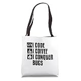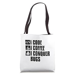Dive into the world of coding with a cup of your favorite brew. Celebrate the coder's love affair with coffee, a match made in coding heaven. Whether you're a coding enthusiast, developer, or simply a coffee lover, our designs embody the union of code and caffeine. It's a sip of inspiration for your coding journey. 16” x 16” bag with two 14” long and 1” wide black cotton webbing strap handles. Made of a lightweight, spun polyester canvas-like fabric. All seams and stress points are double-stitched for durability, and the reinforced bottom flattens to fit more items and hold larger objects. Spot clean/dry clean only.