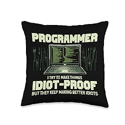 CharlIan Minds - Funny Computer Programmer Saying Programmer I Try to Make Things Funny Computer Science Throw Pillow, 16x16, Multicolor