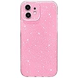 Hython Case for iPhone 11 Case Glitter Cute Sparkly Shiny Bling Sparkle Phone Cases 6.1", Thin Slim Fit Soft TPU Bumper Shockproof Rubber Protective Cover for Women Girls Girly, Bright Pink