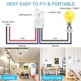 ☻【Wireless Light Switch】NineLeaf wireless wall switch receiver adopts a hidden antenna and plug-in wiring design, which is smaller in size. Wireless wall switch battery: CR2032 battery(included) Mini Size Remote Switch: Dimensions: 75x 48x15mm, Receiver Controller size: 46x 27x22mm. Input: AC 80-275V Max Intergraded Load ≈1000W Output loading per way: under 1000W (general lamp) under 1000W (LED LAMP) Remote control. ☻【Fast & Easy Installation】The remote light switches wireless is not obstructed by walls, capable of connecting any load remote controller and switch can be used simultaneously for ease and flexibility. It is very convenient for the elderly, infirmed, pregnant women, and the disabled. ☻【Wide application】Wireless lights apply electrical: Droplight, crystal lamp, modern low-pressure lamp, absorb dome light, day flower lamp, fluorescent lamp, energy-saving lamps, exhaust fan, etc... Great to control your garden shed, garage, and exterior lighting from home! You can easily switch lights on and off with the remote control. It is very convenient for the elderly with limited mobility, pregnant women, and the disabled. ☻【Strong Signal】The effective distance between the receiver and the control panel is up to 328ft indoors and 1900ft outdoors. Strong signal through the walls and remote control your bulbs, halogen lamps, fluorescent lamps, CFLs, LED lights, fans and other electrical switchboards, etc. Max Integrated Load: 1000W. ☻【Long Lifespan】The receiver of portable mini wireless light switch can be used over 500,000 times; the switch key can be used over 800,000 times. We offer a whole life year warranty and friendly 24-hour customer service. CE, FCC, RoHS, CQC Certified. If you have any questions, please feel free to contact us and we will help you solve your issues.