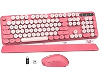 Stunning Pink Typewriter Style Keyboard & Mouse Combo: Cute and colorful pink typewriter-style wireless keyboard and mouse combo designed for girls, teens and aesthetic desk lovers. Retro candy-like round keycaps and vintage vibes brighten your workspace, making every typing session fun, stylish and productive. Detachable Magnetic Wrist Rest for Comfort: The ergonomic magnetic wrist rest provides up to 54% more palm support to reduce wrist strain during long study or work sessions. It snaps on and off in seconds, stays firmly in place, and features a splash-proof surface that is easy to wipe clean. Splash-Proof, Easy-Clean Retro Round Keycaps: Accidental coffee or water splashes? No problem. The splash-proof design wipes clean in seconds, while floated retro round keycaps are skin-friendly and comfortable to type on. Removable keycaps let you deep-clean dust and crumbs to keep your cute desk setup fresh. Stable Typing Angle & Comfy Mouse Grip: Foldable tilt legs and 7 anti-slip pads on the bottom give you a stable, ergonomic typing angle that helps reduce fatigue. The wireless mouse is shaped to fit comfortably in your palm for smooth scrolling and clicking—perfect for everyday school, home office, and gaming use. Advanced Wireless Connection, No Lag: Enjoy a seamless wireless experience with the USB receiver. Simply plug it into your computer/laptop for efficient and fast signal transmission. NOTE: Lost receiver? We'll replace it FREE! Auto-Sleep Mode & Battery Info: To conserve power, both the keyboard and mouse automatically enter sleep mode after 30 minutes of inactivity. Wake them instantly with double click. (Keyboard requires 2 AAA batteries; Mouse requires 1 AA battery. Batteries not included). School Essentials & Stylish Desk Accessories: A thoughtful gift choice for coworkers, friends, or loved ones. This cute wireless keyboard and mouse set adds both comfort and charm to your workspace, making typing more enjoyable and efficient. Perfect for the back-to-school season or as a practical addition to any home office. A lovely way to refresh your setup or surprise someone special during the upcoming shopping events.