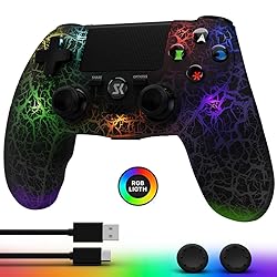 Adjustable Light Modes: The controller for PS4 features 5 adjustable light modes: breathing light, randomized light flashing, gradient color, single color constant light, and turn-off lights. You can customize the light modes based on your preferences. Stand out from your friends with this feature! 1000 mAh Battery: The controller for PlayStation 4 is equipped with a 1000 mAh high-capacity rechargeable battery offering 8-12 hours of gaming time. There are two charging options available to choose from a USB charging cable or a charging station, taking just 2 hours for a full charge. (USB charging cable included) Wide Compatibility: The wireless controller is fully compatible with PlayStation 4/Pro/Slim/PC/IOS/Android. You'll need to use a USB cable for the initial pairing. After that, a up to 33 feet wireless connection can be established. Elevate Your Game: The bluetooth controller's wireless connection has been improved to work better and not disconnect as often during games. The ergonomic, non-slip design not only enhances grip to prevent accidental drops but also ensures a better fit for your hands, minimizing fatigue even during extended gaming sessions. Features: The PC controller's built-in double motors provide varying intensities of vibration feedback based on different in-game collisions. The 6-axis motion sensor ensures that every action you make is accurately translated into the corresponding in-game action. Use it to immerse yourself in the gaming world and relax when you're feeling tired. New Ways to Play: You don't have to worry about disturbing others because the PC controller offers two ways to enjoy high-quality sound—either through the built-in speaker or the 3.5mm headset jack.(Note: Incompatible with Turtle Beach Headphones) Our Service: The CHENGDAO gaming controller makes for a delightful surprise as a gift for your family, and friends on occasions like Christmas, birthdays, or Valentine's Day. If you have any questions or encounter any issues, please don't hesitate to contact us. We are committed to providing you with the best service possible!