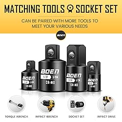 - BOEN 4 Piece Impact Socket Adapter Set and Reducer Set, 1/4", 3/8", 1/2" Drive Socket Adapter Set, SAE Impact Adapter Conversion Set for Impact Driver Wrench, Cr-Mo Steel