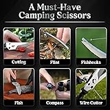 HEAVY DUTY PROFESSIONAL POULTRY SHEARS -- These heavy-duty poultry shears are crafted from high-quality stainless steel, ensuring safety and rust-proofing. These heavy-duty shears are incredibly robust, boasting excellent corrosion resistance and high wear resistance. MULTIPURPOSE KITCHEN SHEARS -- Multipurpose Kitchen Shears, perfect for heavy-duty tasks in the kitchen, such as cutting whole chickens, chopping herbs, and dicing vegetables.These professional-grade meat scissors offer quick and easy detachment, allowing one blade to function as a knife, while the other serrated blade is ideal for scraping fish scales. ERGONOMICALLY DESIGNED -- Designed with ergonomics in mind,these poultry scissors have a non-slip design handle that ensures a firm grip even with greasy hands.These scissors are equipped with a built-in booster for easy using. CAMPING POULTRY SHEARS -- Professional multipurpose poultry scissors come with extra features. Bottle opener in the blade for fast & easy opening of bottles and jars.The handle also features an integrated compass and flint, making it perfect for outdoor camping. These sharp shears can even be used as wire cutters, fish hooks and window breakers. SAFE & DISHWASHER SAFE -- When not in use, you can lock these heavy-duty poultry shears with a safety latch for easy storage.Keeping kitchen shears clean is easy. Simply rinse with water, and if needed, the blades can be separated for thorough cleaning.