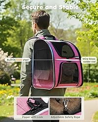 - Why choose the Pecute pet carrier backpack? -Comfortable and stable design: The adjustable shoulder straps and buckles with widened adjustable shoulder pad help reduce the load and increase comfort. The two buckles for the chest and belly of the pet backpack help to reduce shaking and keep the carrier stable during travel. -Convenient storage: The cat carrier backpacks have pockets on both sides to allow you to store food, trash bags, and other necessary accessories, such as bottles, snacks, keys, cards, or mobile phones. -Safety features: The cat backpack comes with a built-in safety belt that you can connect to your pet's collar to prevent them from accidentally escaping or falling. -Sturdy and comfortable cushion: The dog backpack carrier has a removable firm bottom that features soft cushioning for your pet to sit or sleep comfortably. Overall, the Pecute pet carrier backpack offers a comfortable and stable design with convenient storage and safety features to ensure a safe and enjoyable travel experience for you and your furry friend.