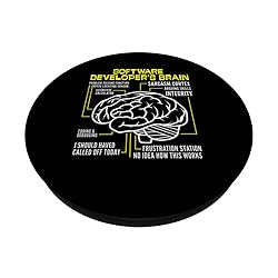 Display your hilarious software developer humor with this unique software developer's brain design. A fun twist to your everyday coding sessions. Distressed style for an eye-catching appeal. Perfect present for algorithm enthusiasts, software programmers, or anyone who loves coding. Features a creative brain depiction with software developer themed ideas. Appropriate for men, women, and kids alike. Adhesive backing attaches the PopGrip to your case or device. Will not stick to silicone, leather, waterproof, or highly textured cases. Works best with smooth, hard, plastic cases. Not compatible with wireless charging Printed top is swappable with other compatible PopGrip models. Just press flat, turn 90 degrees until you hear a click and remove to swap.