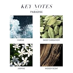 - Paradise Essential Oil - Top notes: Sweet cardamom, Marine; Middle notes: Jasmine, White hyacinth,Wine grape; Base Notes: Woody Scent.