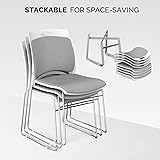 VINGLI Stackable Chairs Set of 4, Stacking Office Chairs with Metal Sled Base, Ergonomic Plastic Padded Seat & Back, Capacity 350lbs, Stacking Chairs for Waiting Room Break Room Banquet Guest, Gray