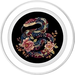 Snake Floral Tattoo design. this colorful vintage floral ball python design for men and women with vintage flower tattoo patterns is the perfect gift idea for snake and reptile lovers, python breeders and tattoo artists. Magnetically snaps on and off your phone case so you can easily swap between MagSafe compatible accessories. Adaptor ring included. Make any phone case MagSafe compatible by attaching the adaptor ring. A phone case is required but not included to use the wallet. Printed top is swappable. Close and twist to swap the top with a new design with other compatible PopGrip models.