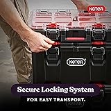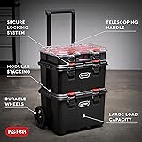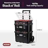 Durable Resin Tool Storage: Heavy-duty yet lightweight resin construction delivers long-lasting performance for garage storage, DIY projects, and home workshops Modular Rolling Tool Box System: Interlocking Stack N’ Roll design creates a customizable mobile workshop with rolling base, tool box, and small parts organizer Secure Locking Latches: Snap-close audible latches ensure each unit is securely locked, keeping tools and accessories protected during transport Smooth Mobility & Control: Metal telescopic handle, 7” durable wheels, and integrated side grips provide easy maneuvering across garages and jobsites Clear-Lid Small Parts Organizer: Transparent polycarbonate lid allows quick visibility and organized storage for screws, hardware, and accessories