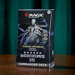 - TODO LO QUE NECESITAS PARA BATALLAS EPICAS MULTIJUGADOR—Incluye 1 mazo Eldrasi Incursión Modern Horizons 3 listo para jugar, una muestra de 2 cartas de refuerzo coleccionista, 10 fichas dobles, 1 contador de vida y 1 caja de mazo