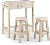 Solid wood construction makes this breakfast bar table a durable and stylish addition to any kitchen or dining room set. Bar table with stools: This high bar table comes with a set of matching stools for comfortable seating at the kitchen bar. The counter height dining table set includes stools, providing a convenient and space-saving solution for small living areas. This portable island for kitchen can easily be moved to create additional prep space or seating as needed. Eco-Friendly, Sustainably Sourced Materials- The Unfinished Wood is 100% Natural, Chemical Free Table Dimensions: 31.49'' L x 15.74'' W x 33.07'' H Stool Dimensions: 20.07'' H x 11.81'' W x 11.81'' D