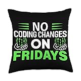 100% Polyester No Coding Changes On Fridays. Hands with codes. Computer Programming Design perfect for software developers computer engineers, web designers. If your work is in debugging, coding, developing apps, this design is rightly for you, just beware of the fixing bugs and hacker. 100% spun-polyester fabric Double-sided print Filled with 100% polyester and sewn closed Individually cut and sewn by hand Spot clean/dry clean only