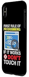 First Rule Of Programming: If It Works, Don't Touch It. Computer screen and do not touch mouse icon. Computer Programming Design perfect for software developers computer engineers, web designers. If your work is in debugging, coding, developing apps, this design is rightly for you, just beware of the fixing bugs and hacker. Two-part protective case made from a premium scratch-resistant polycarbonate shell and shock absorbent TPU liner protects against drops Printed in the USA Easy installation