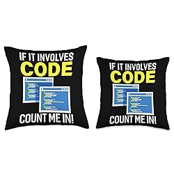 100% Polyester If It Involves Code, Count Me In!. Programming quote design for programmer. Computer programmer design perfect if you love programming. Perfect for any computer sciencetist, computer engineer and tech guys. Get ready and make your computer beep boop. 100% spun-polyester fabric Double-sided print Filled with 100% polyester and sewn closed Individually cut and sewn by hand Spot clean/dry clean only