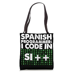 Spanish Programmer - I Code In Si++. Programming quote design for programmer. Computer programmer design perfect if you love programming. Perfect for any computer sciencetist, computer engineer and tech guys. Get ready and make your computer beep boop. 16” x 16” bag with two 14” long and 1” wide black cotton webbing strap handles. Made of a lightweight, spun polyester canvas-like fabric. All seams and stress points are double-stitched for durability, and the reinforced bottom flattens to fit more items and hold larger objects. Spot clean/dry clean only.