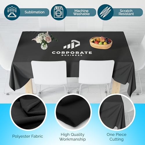 - Whether it's for a business event, personal party, or outdoor gathering, our custom tablecloth is a versatile choice. With its dye-sublimated fabric, you can machine wash it without worrying about color fade.