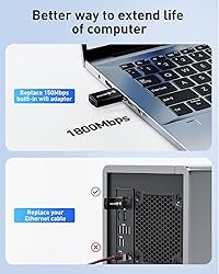 1800Mbps High WiFI SPEED 5G/2.4G - Upgrade to latest Wi-Fi 6th Standard on your Laptop or computer for a jump in performance,USB Wifi Adapter for PC, 802.11AX Wifi USB, Dual Band WiFi Dongle, up to 1201Mbps on 5GHz band or 574Mbps on 2.4GHz band. Dual band 5GHz and 2GHz - 5GHz wifi usb adapter speeds up to 1201Mbps,2GHz 574Mbps,With these upgraded speeds, web surfing, gaming, and 4k streaming online is much more enjoyable without buffering or interruptions.A cost-effective way to extend life of desktop computer pc Laptop with wifi 6 usb adapter. Plug and Play Easy Setup - This pc wifi adapter only supports Windows 11/10,The windows will automatically detect and install driver. Not support windows 7/MAC or other systems wifi adapter for desktop pc laptop both.this is a wifi receiver not a data plan wifi card Tiny Design USB WiFi - Avoid blocking adjacent USB interfaces,only we have 1800mbps nano pc wifi adapter,others are lower speed.With 5GHz and 2.4GHz wifi receiver getting fast wifi connection.easy for travel to get fast wifi connnections with wifi 6 network adapter. High Gain Wifi Antenna – The dual band high gain wifi antenna of the wifi adapter greatly enhances the reception and transmission of WiFi signal strengths.Make wireless adapter connection stable f for desktop laptop computer,enjoy the fast wireless internet network for pc Super USB 3.0 - Works more stable and 10 times faster than USB 2.0, Wireless usb adapter brings internet of PC 10 times faster and more solid wireless network connection,WiFi adapter for pc, using the USB 3.0 interface to ensure the 5Ghz up to 1201Mbps internet wifi computer pc laptop connections WPA3 Security Protocol -The wireless 6 usb adapter has the latest generation of WiFi security protocol,The WPA3 Wi-Fi security helps protect your internet network from attacks.the wireless adapter Support WPA3/WPA2/WPA/WEP secure Technology.