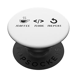 COFFEE CODE REPEAT. Fun meme for your favorite developer who codes all day! Whether you're a professional front-end, backend, full-stack, software, or UI/UX developer, you know how easy it is to obsess over codes and programming languages. I TURN COFFEE INTO CODE. Stay caffeinated! Great for a computer programmer, coder, anyone into web development. Click on the brand name for more funny coding memes. Adhesive backing attaches the PopGrip to your case or device. Will not stick to silicone, leather, waterproof, or highly textured cases. Works best with smooth, hard, plastic cases. Not compatible with wireless charging Printed top is swappable with other compatible PopGrip models. Just press flat, turn 90 degrees until you hear a click and remove to swap.