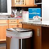 Made with 10% post-consumer recycled material; from garbage or waste that's been used by a consumer, disposed of, and diverted from landfills Includes 200 tall kitchen garbage bags Individual bag dimensions: 24 inches wide x 27 3/8 inches tall with 0.9 mil bag thickness Each trash bag has a 13-gallon capacity White trash bag with red drawstring closure for easy tying and carrying An Amazon Brand