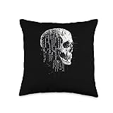 Creepy Skull Binary Code Computer Coding Programmer Emo Throw Pillow