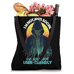 This "I'm not antisocial. I'm just not user-friendly." Anti Social Hacker design is perfect for computer science enthusiasts, programmers, coders, and software engineers. Show off your love for coding and computer geekery with this unique design. Show off love for coding and debugging with this Computer Science design. Perfect for software engineers, web developers, and debuggers. 16” x 16” bag with two 14” long and 1” wide black cotton webbing strap handles. Made of a lightweight, spun polyester canvas-like fabric. All seams and stress points are double-stitched for durability, and the reinforced bottom flattens to fit more items and hold larger objects. Spot clean/dry clean only.