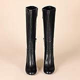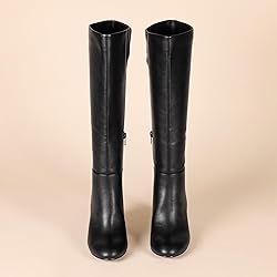 COMFORT AND FIT: These tall heel boots have a padded insole with high-quality memory foam for added comfort and an interior zipper for easy entry. MATERIAL: Amazon Essentials shoes are made from high-quality alternative leather materials. This style has a faux calfskin upper and is lined in canvas. STYLE: These boots have a modern block heel, turned seams without stitching, and a soft almond toe. DETAILS: 3 inch heel with a flexible non-slip sole. Shaft height measures 14.5 inches from where your heel sits to the top of the shaft. DESIGN: These versatile boots take you from day to night and can be paired with your favorite Amazon Essentials outfit.