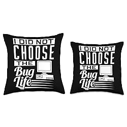 100% Polyester I did not choose the bug life. Coding Design perfect for nerds and geeks who like programming in front of their computer. A funny Design perfect for developers who like hacking and debugging. 100% spun-polyester fabric Double-sided print Filled with 100% polyester and sewn closed Individually cut and sewn by hand Spot clean/dry clean only